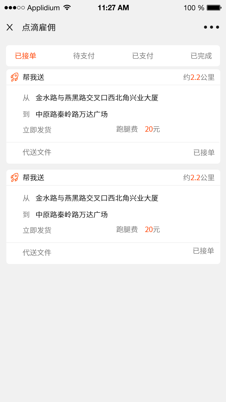 项目概况为让在校生更好的投入学习,发愤图强提升自己的技能,早日成为国家栋梁之才,并解决在校生日常诸多琐碎小事,如买饭、买日需品、领快递、送资料、还图书等耗时费力的小事,特开发此公众号跑腿系统。